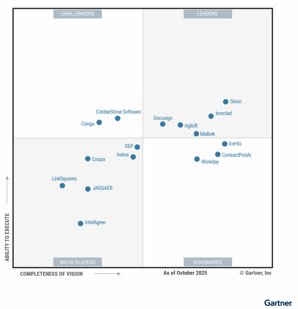 Gartner, Magic Quadrant for Contract Life Cycle Management. Kaitlynn Sommers, Kerrie McDonald, Lynne Phelan., 10 November 2025.
